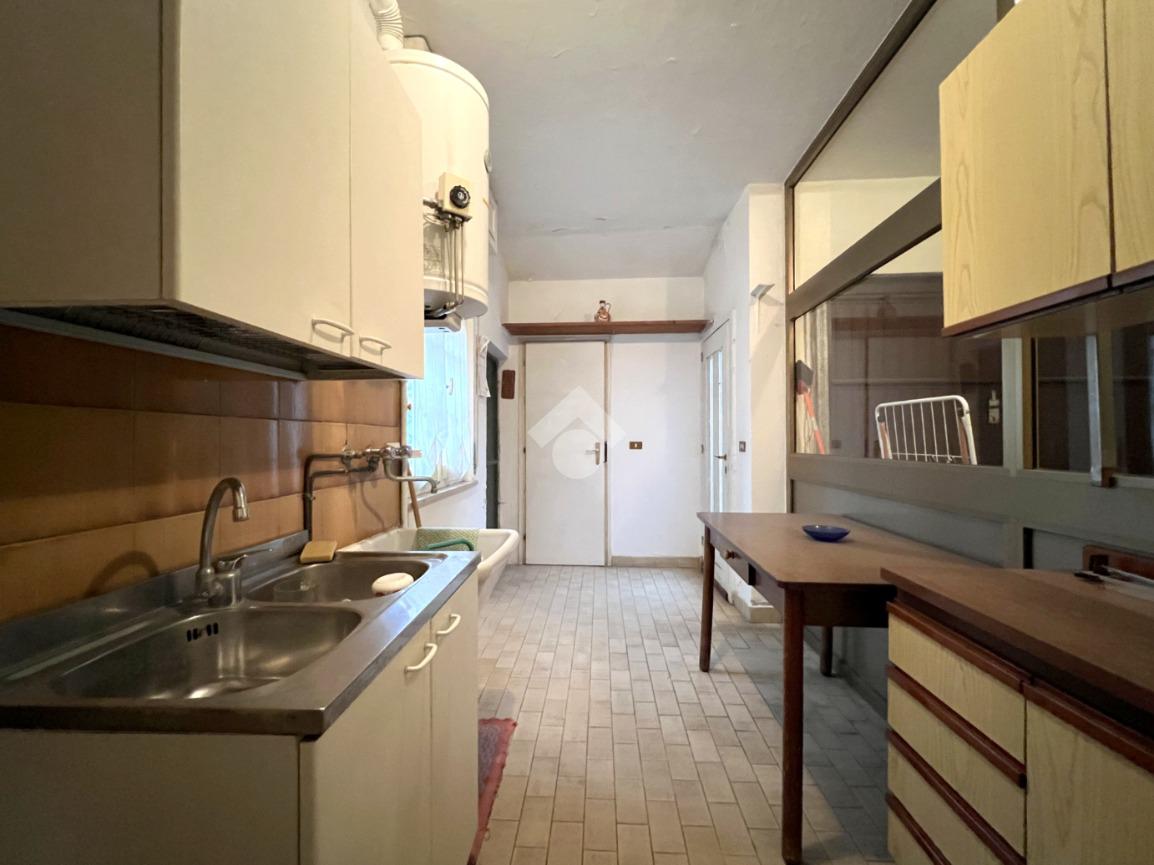 L’ingresso al piano terra conduce a un corridoio che accompagna agli ambienti principali: una cucina con sala da pranzo e un’ulteriore stanza adibita al soggiorno.