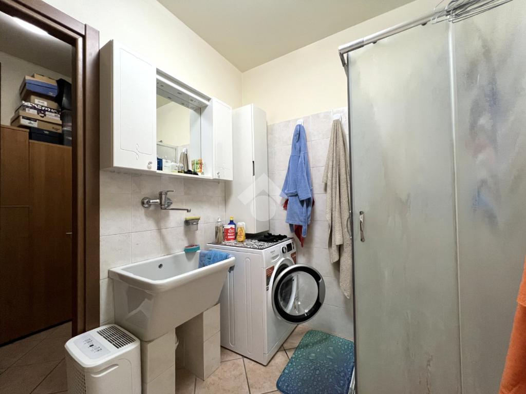 Il bagno, finestrato è dotato di vasca. Completa una pratica lavanderia con doccia e un grande ripostiglio, perfetto per riporre oggetti e mantenere gli spazi sempre ordinati.