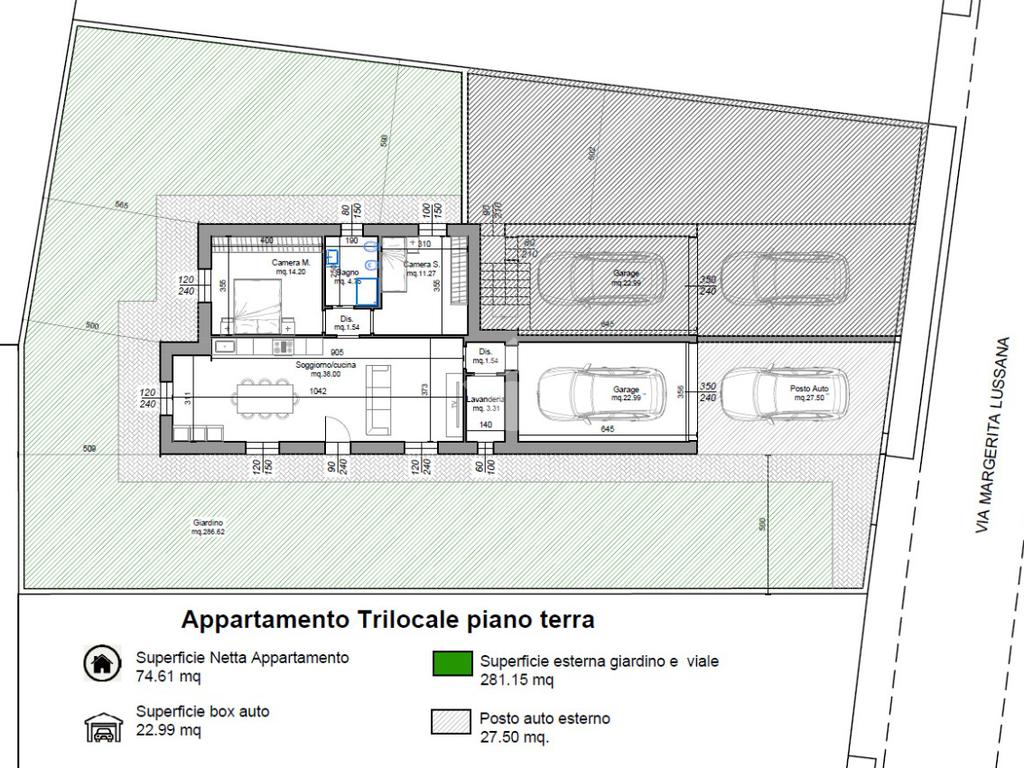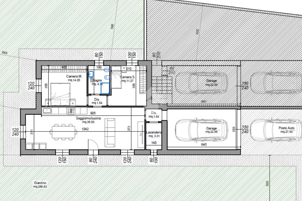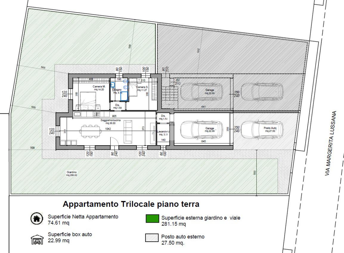 NUOVO PROGETTO - APPARTAMENTO TRILOCALE DI NUOVA COSTRUZIONE situato al piano terra con un giardino privato di circa 281 mq. L’abitazione si sviluppa al piano terra ed è composta da un ampio soggiorno open space, valorizzato da portefinestre che si affacciano sul giardino.