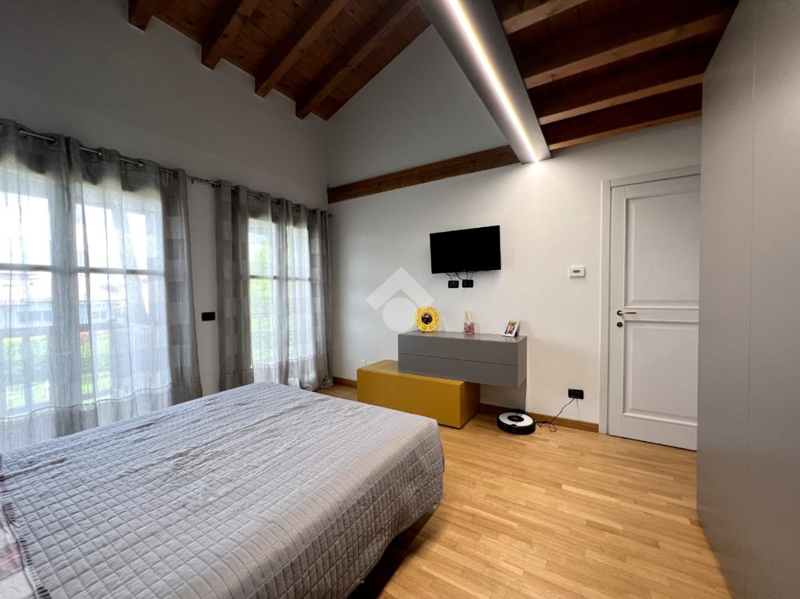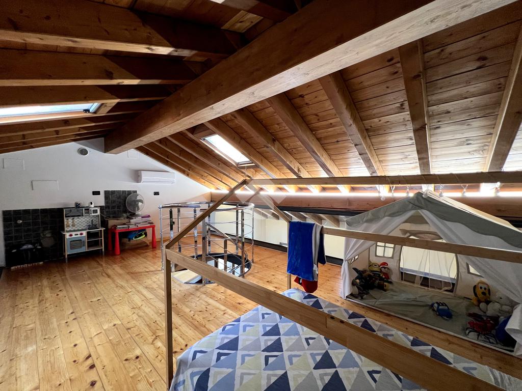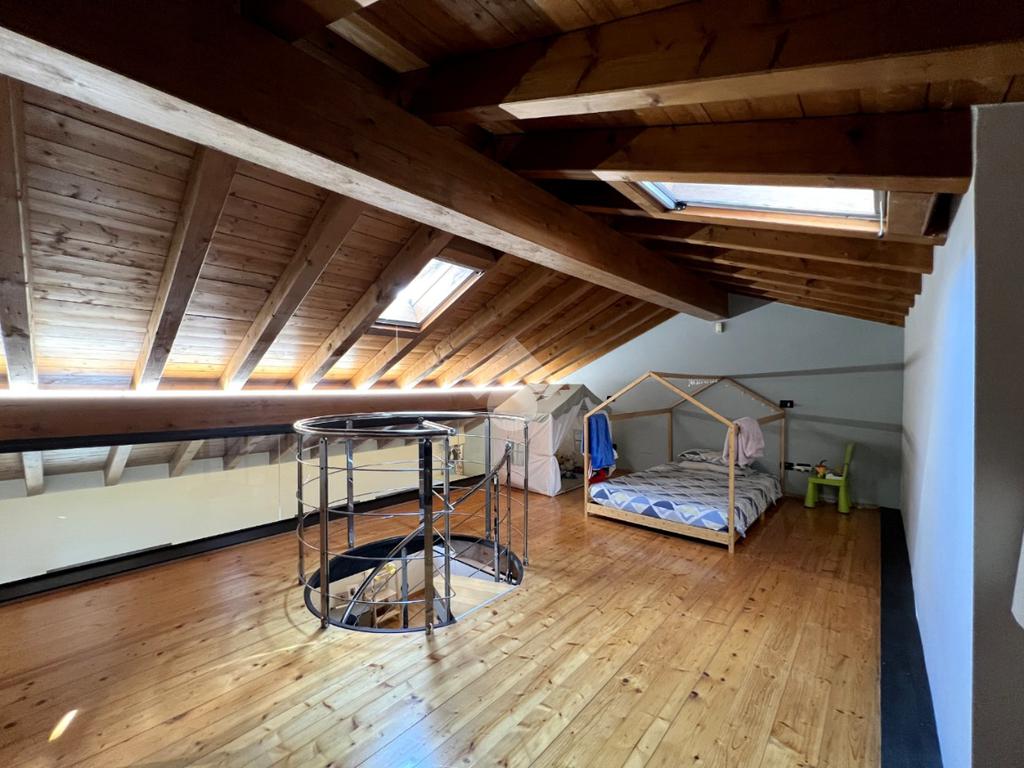 Il soppalco è arricchito da una vetrata laterale con affaccio sul soggiorno; è inoltre dotato di split per l’aria condizionata e di finestra a tetto (tipo Velux).