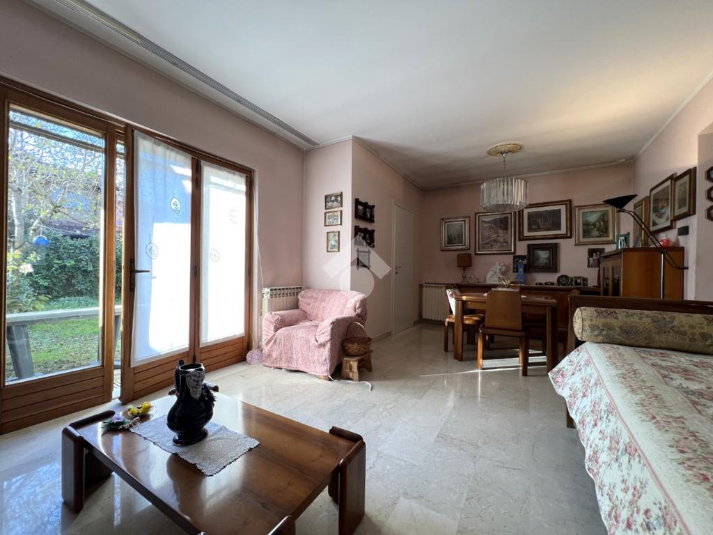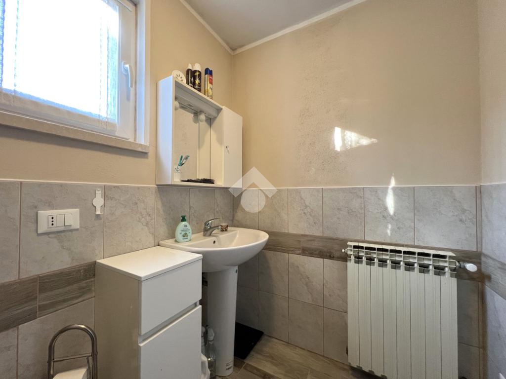 Accediamo alla proprietà attraverso un ampio disimpegno, che ci conduce a un soggiorno spazioso con porte finestre che si aprono sul giardino. Proseguendo, troviamo una cucina separata e abitabile, insieme a un bagno finestrato con doccia, recentemente ristrutturato.