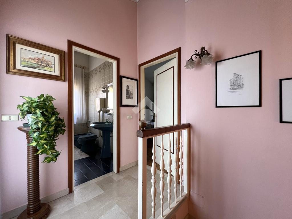 Una scala a vista porta al piano superiore, dove si trovano quattro camere da letto, di cui due con terrazzo privato. Il piano comprende anche un bagno finestrato con vasca.