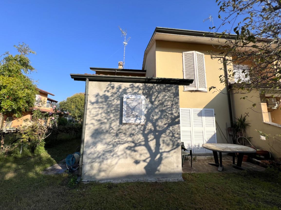 In una zona tranquilla e ben curata, proponiamo una VILLA A SCHIERA su due livelli con un ampio giardino privato sul retro.