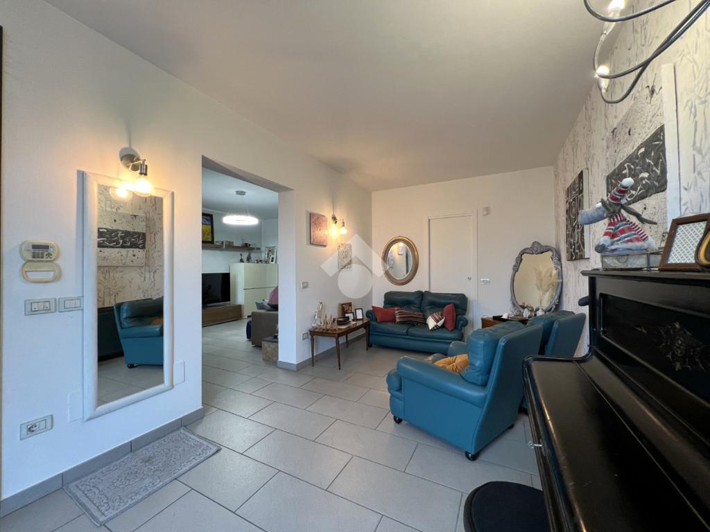 Il soggiorno è valorizzato da una grande porta finestra che assicura un’ottima luminosità, mentre la cucina, separata da una porta scorrevole, si adatta perfettamente sia a chi predilige un ambiente open space sia a chi desidera cucinare in un’area indipendente e riservata.