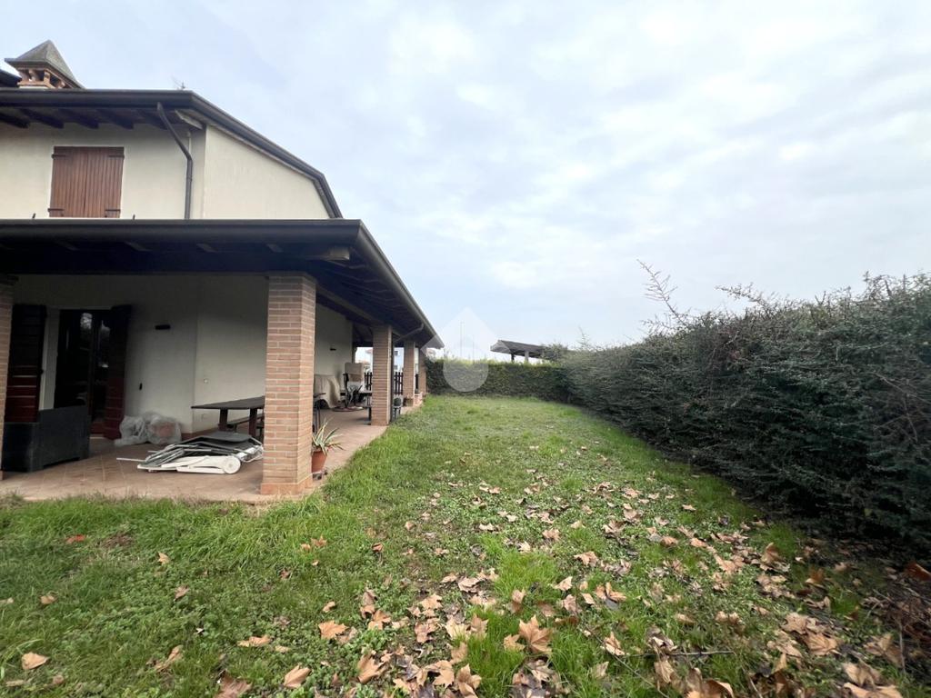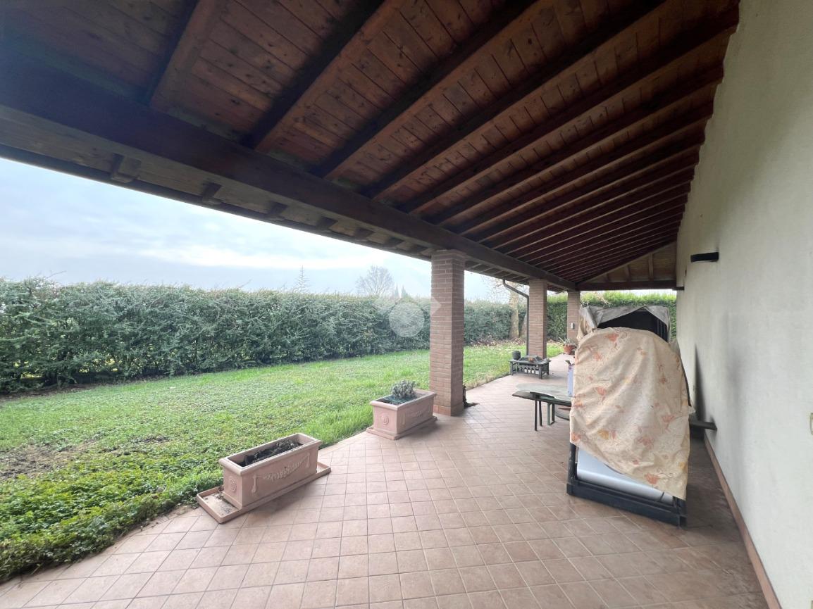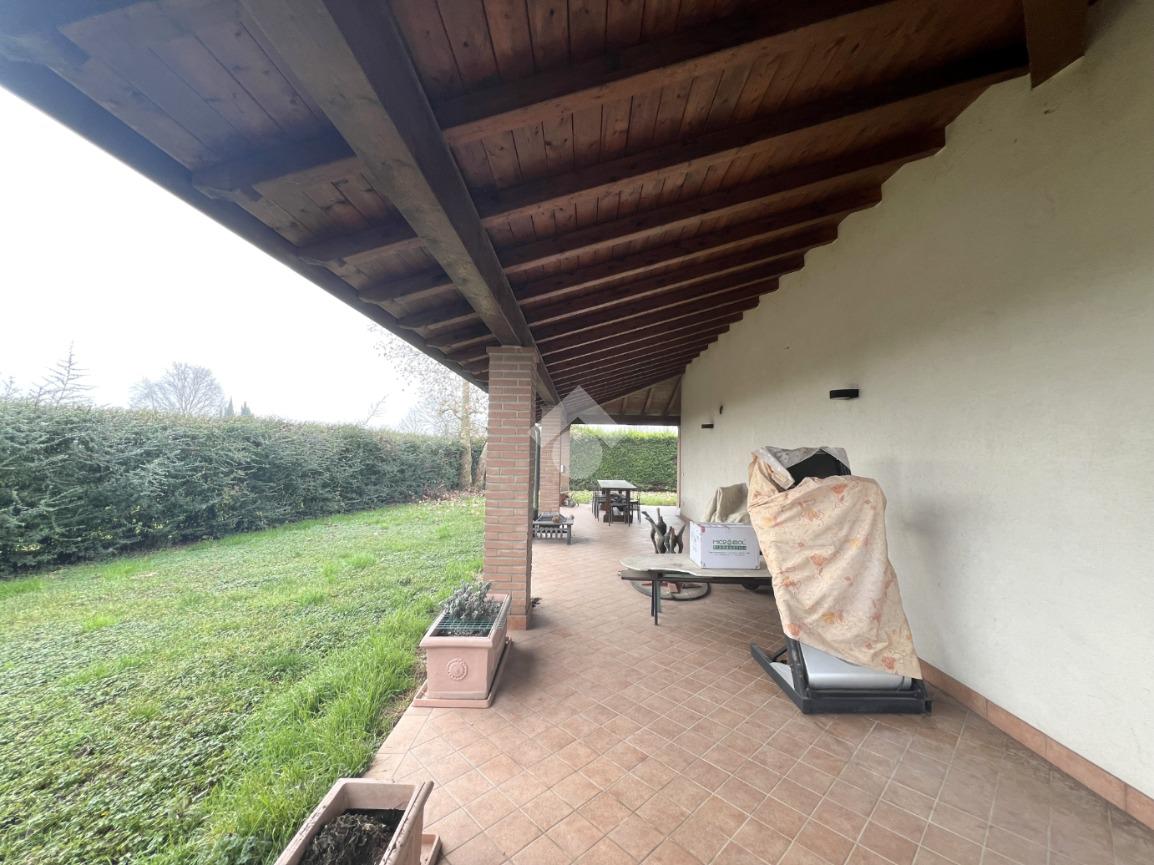 La proprietà dispone di due posti auto coperti, un ampio porticato di 70 mq con possibilità di chiusura per essere sfruttato anche nei mesi invernali, e un giardino di circa 450 mq che si sviluppa su tre lati dell’abitazione.