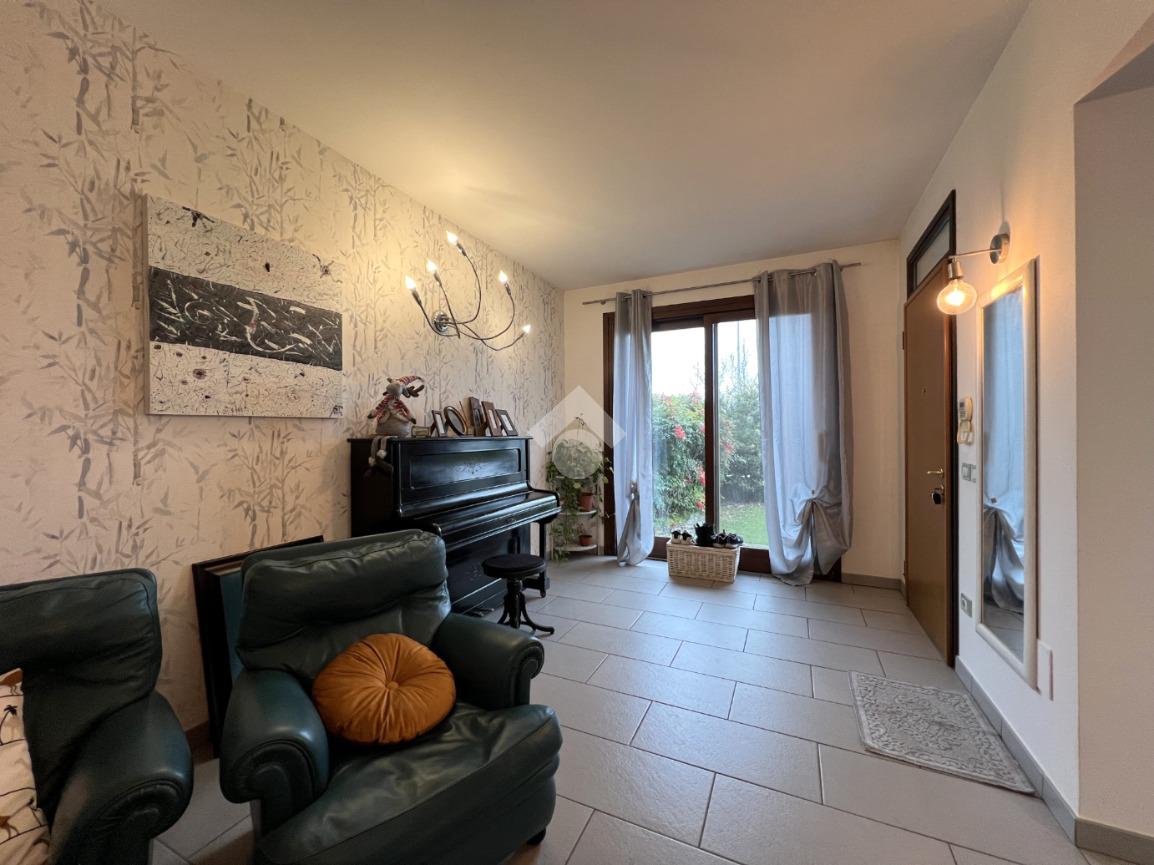L’ingresso è separato dal soggiorno, soluzione che garantisce una migliore distribuzione degli spazi.